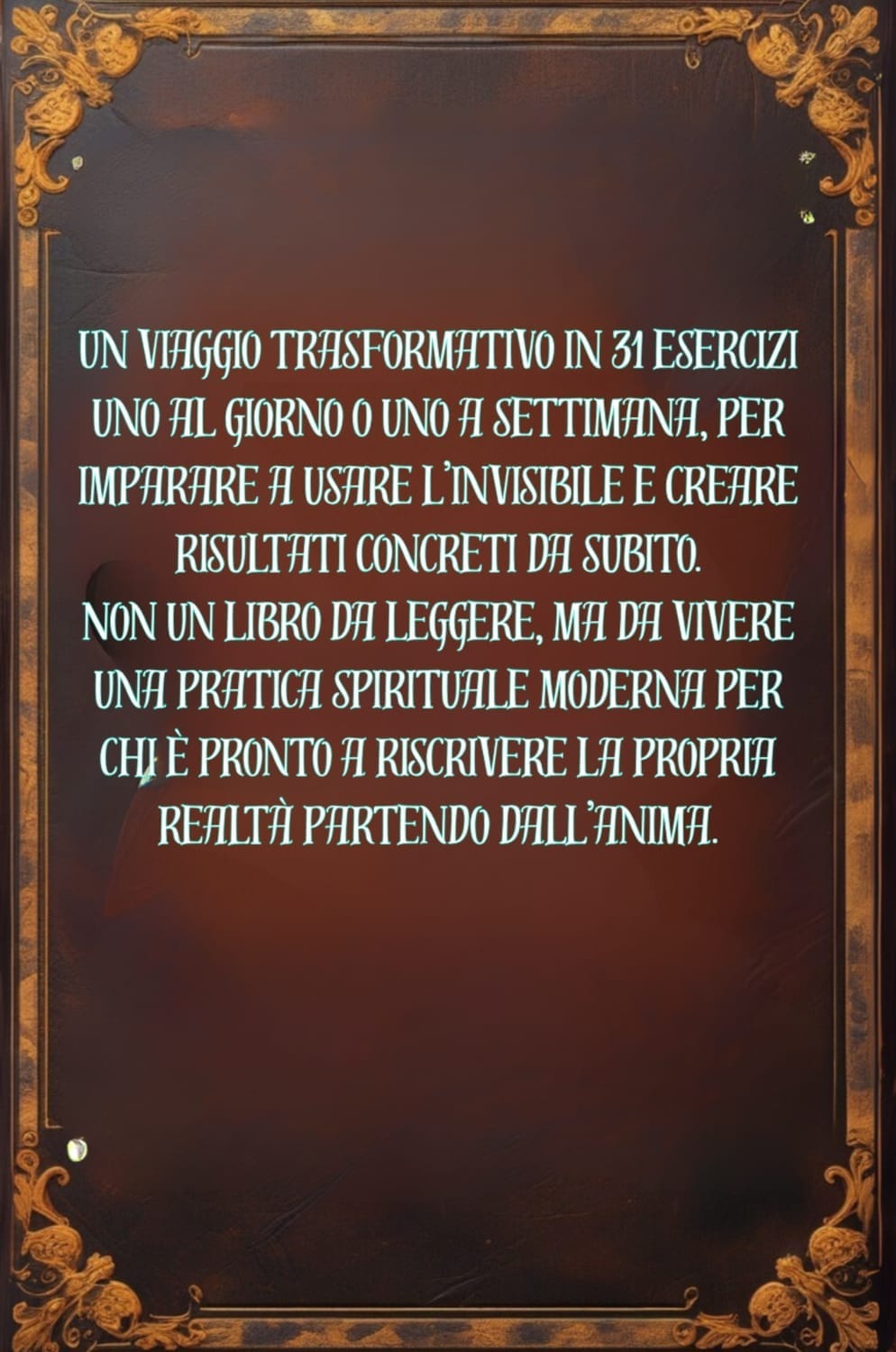 "SE VEDI L'INVISIBILE PUO' FARE L'IMPOSSIBILE" non è un semplice LIBRO - è un potente strumento di trasformazione che include CINQUE pagine extra per le riflessioni quotidiane, tecniche di connessione SEMPLICE e un piano dettagliato per manifestare l'abbondanza. Il fatto che sia offerta GRATUITAMENTE dimostra il vero spirito di condivisione e gratitudine del progetto. Un dono prezioso per chiunque desideri iniziare un autentico viaggio di crescita spirituale. 🎁